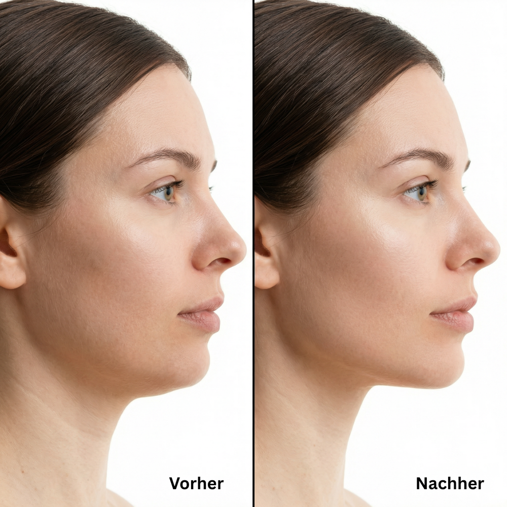 Einige merken sofort ein frischeres Hautgefühl. Sichtbare Konturverbesserung an der Jawline & weniger Schwellungen entstehen jedoch erst durch konsequente, regelmäßige Anwendung über mehrere Wochen.